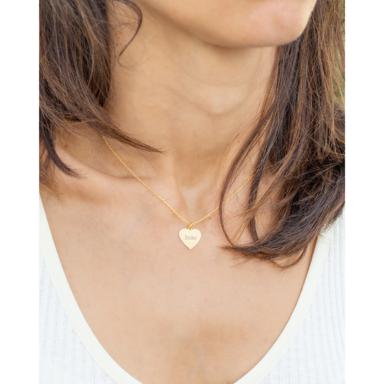 Colar em prata 925 com medalha em forma de coração com cerca de 11 mm e fio ajustável. Personalize-o com nomes, datas ou palavras especiais. Utilize o campo personalização para escrever o gravação pretendida (máximo de 8 caracteres). O envio é realizado n