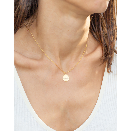 Colar em prata 925 com medalha redonda com cerca de 11 mm e fio ajustável. Personalize a sua jóia com nomes, datas ou palavras especiais, tornando-a única. Utilize o campo personalização para escrever o gravação pretendida (máximo de 8 caracteres). Envio em dois dias úteis.