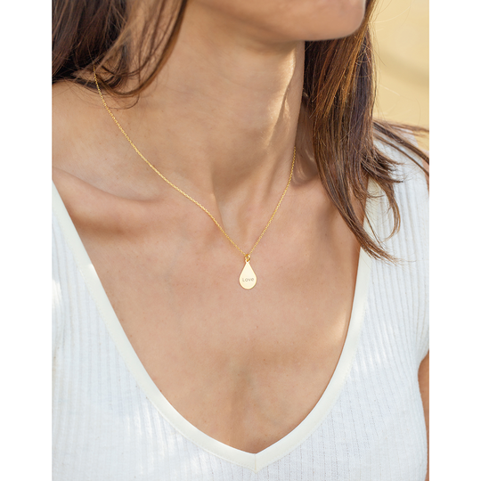 Colar em prata 925 com medalha em forma de gota com cerca de 14 mm e fio ajustável. Personalize-o com nomes, datas ou palavras especiais, tornando-o única. Utilize o campo personalização para escrever o gravação pretendida (máximo de 8 caracteres). Envio