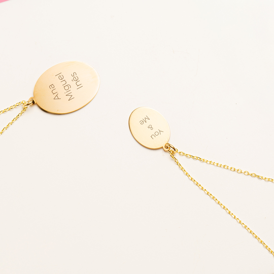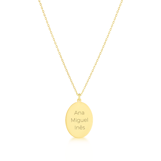 Colar em prata 925 com medalha em forma oval com cerca de 21 mm e fio ajustável. Personalize-o com nomes, datas ou palavras especiais, tornando-o única. Utilize o campo personalização para escrever o gravação pretendida (máximo de 14 caracteres). Envio em dois dias úteis.