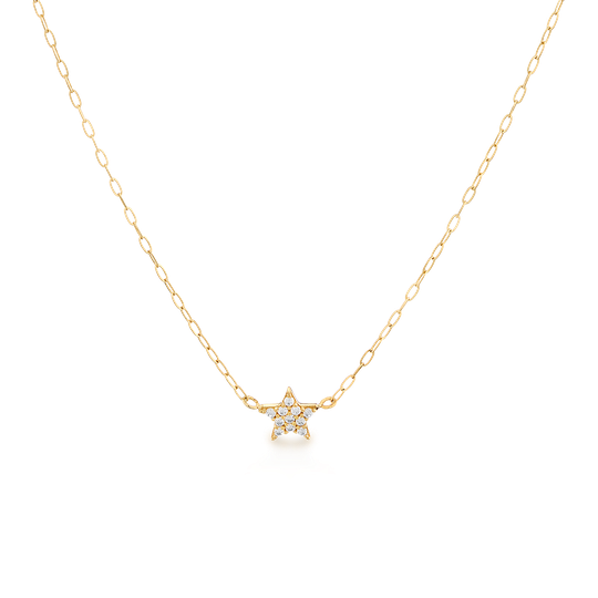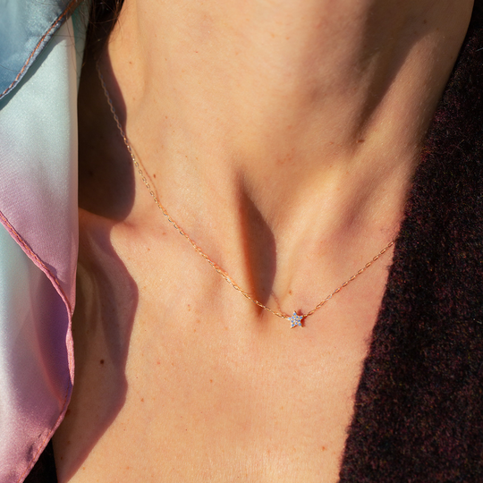 Um brilho que guia. Este delicado colar em ouro 19,2kt destaca-se pelo pendente em forma de estrela, cravejado com zircónias cintilantes. Uma jóia elegante e simbólica, ideal para iluminar o dia a dia ou oferecer como amuleto de inspiração.