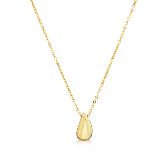 Colar em prata dourada com pendente em forma de gota com volume. Fio ajustável.