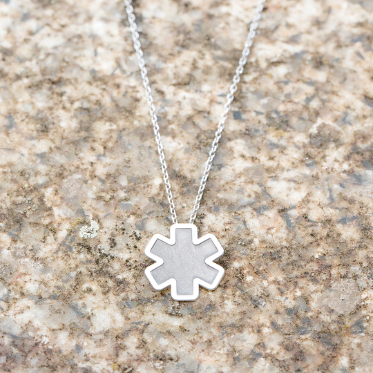 Colar em prata com pendente estrela da vida com acabamento polido e texturado. Pode ser personalizado com uma gravação no verso (máximo de 2 caracteres). Coleção da autoria do Lugar da Jóia. Os colares Human são para todos.