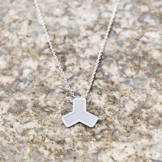Colar em prata com pendente com forma trina com acabamento polido e texturado. Pode ser personalizado com uma gravação no verso (máximo de 2 caracteres). Coleção da autoria do Lugar da Jóia. Os colares Human são para todos.
