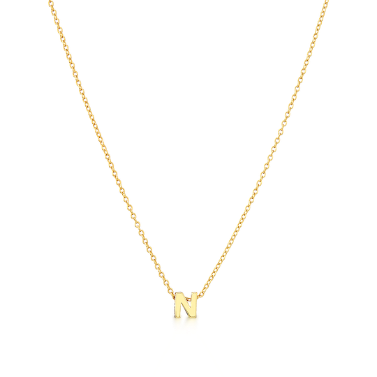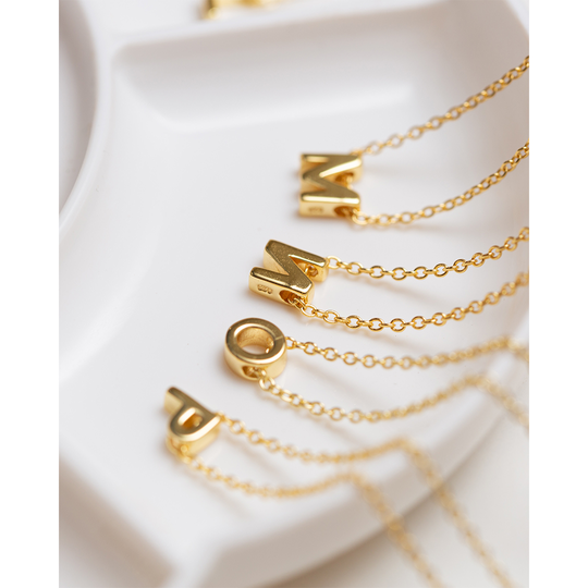 Colar em prata dourada com medalha de letra inicial. Design minimalista, leve e versátil para uso diário. Fio ajustável.