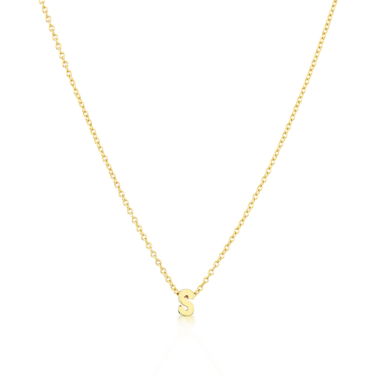Colar em prata dourada com medalha de letra inicial. Design minimalista, leve e versátil para uso diário. Fio ajustável.