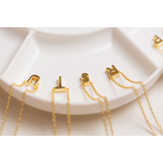 Colar em prata dourada com medalha de letra inicial. Design minimalista, leve e versátil para uso diário. Fio ajustável.
