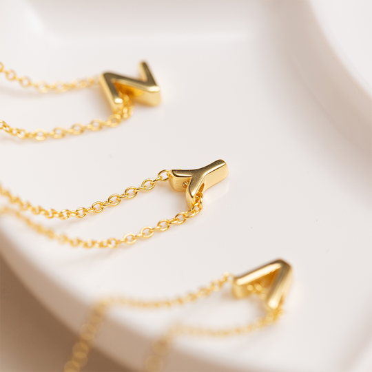 Colar em prata dourada com medalha de letra inicial. Design minimalista, leve e versátil para uso diário. Fio ajustável.
