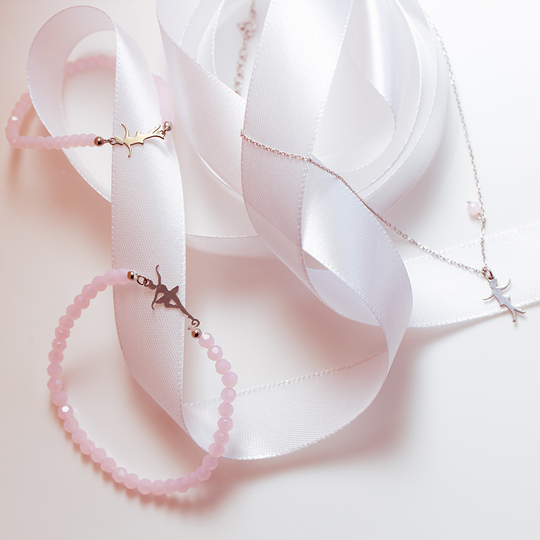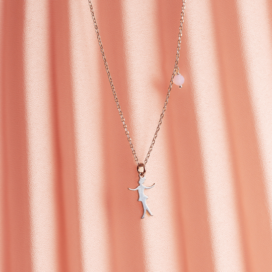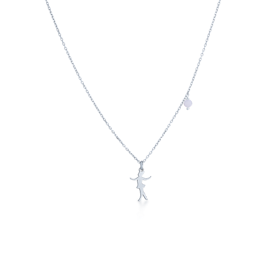 Colar em prata com pendente menina bailarina. Fio ajustável com gema rosa. Uma criação do Lugar da Jóia.