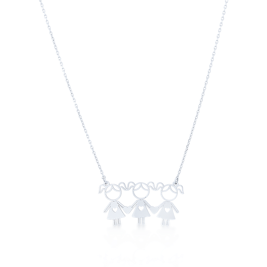Colar em prata com três meninas recortadas. Colar ajustável. Adorável presente para mães, tias ou avós. Original e exclusivo Lugar da Jóia.