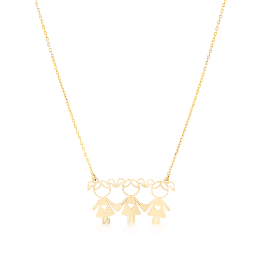 Colar em prata dourada com três meninas recortadas. Colar ajustável. Adorável presente para mães, tias ou avós. Original e exclusivo Lugar da Jóia.