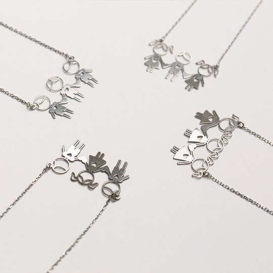 Colar em prata com três meninos recortados. Colar ajustável. Adorável presente para mães, tias ou avós. Original e exclusivo Lugar da Jóia.