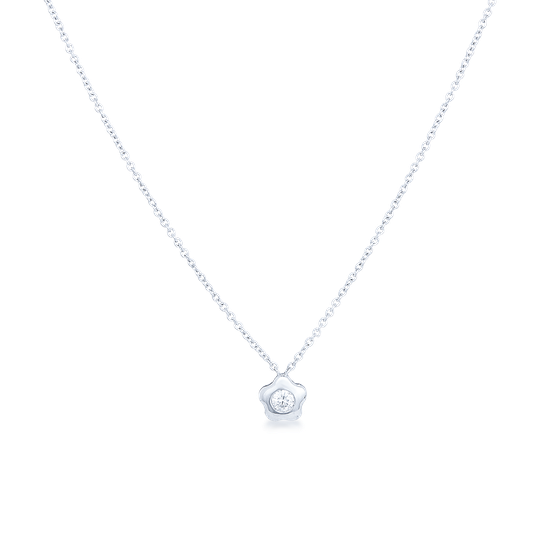 Colar em ouro branco de 19,2 quilates com pendente em forma de estrela com diamante no centro. Fio ajustável com pequeno coração no fecho. Sugestão para uma noiva discreta e sublime.