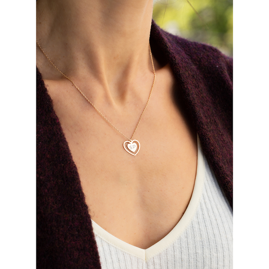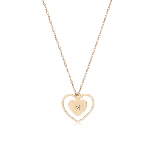 Colar em ouro amarelo 19,2Kt em forma de coração com coração mais pequeno no interior, ao centro. Permite a personalização, com a gravação de um ou dois caracteres. Use o campo abaixo para definir a gravação. O envio da jóia personalizada é realizado no prazo de dois dias úteis.