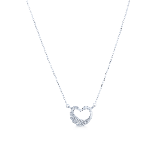 Colar em prata com coração com pormenor de zircónias. Fio ajustável.