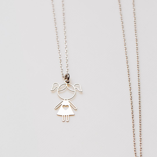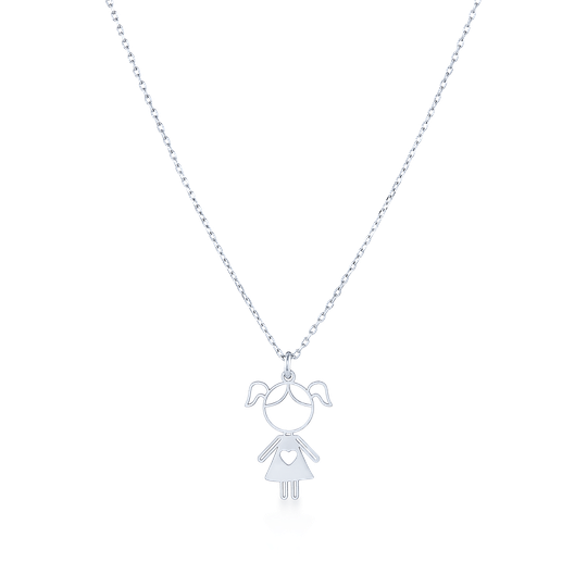 Colar em prata com menina recortada. Colar ajustável. Adorável presente para mães, tias, avós ou madrinhas. Original e exclusivo Lugar da Jóia.