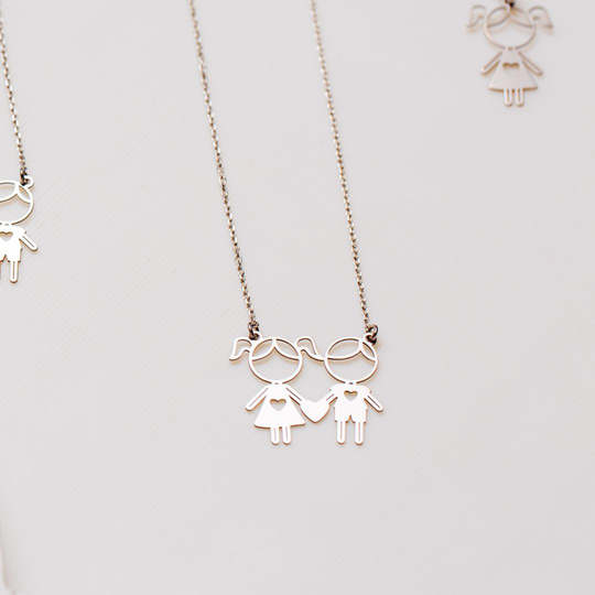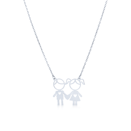 Colar em prata com menino e menina recortados. Colar ajustável. Adorável presente para mães, tias ou avós. Original e exclusivo Lugar da Jóia.