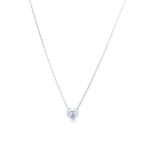 Colar em prata com pequeno coração com zircónia que desliza no fio. Colar ajustável.