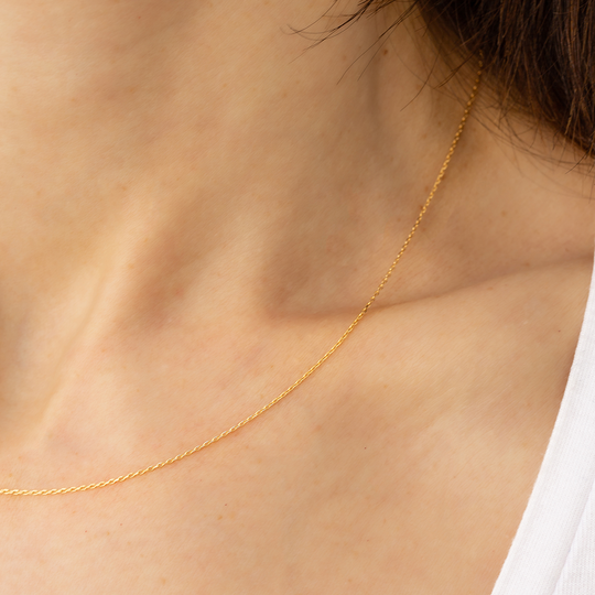 Fio em ouro de 19,2 quilates. Para usar só ou com a medalha desejada.