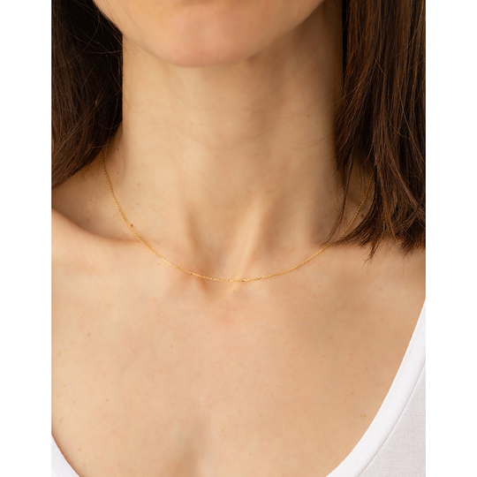 Fio em ouro de 9 quilates ajustável. Para usar só ou com a medalha desejada.