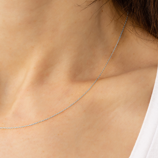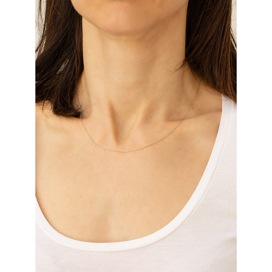 Fio em ouro branco de 9 quilates. Para usar só ou com a medalha desejada.
