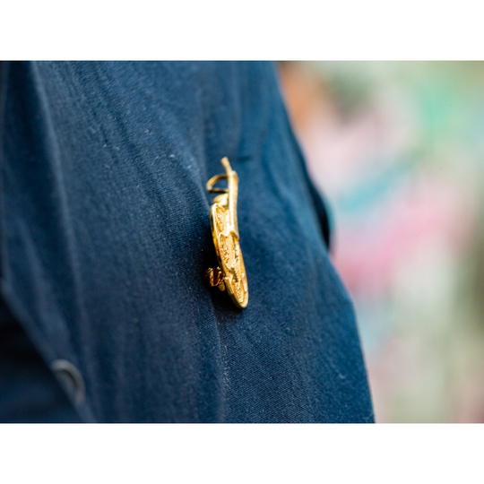 Guitarra portuguesa de filigrana em prata dourada. Pode ser usada como medalha ou como alfinete.