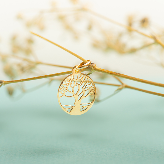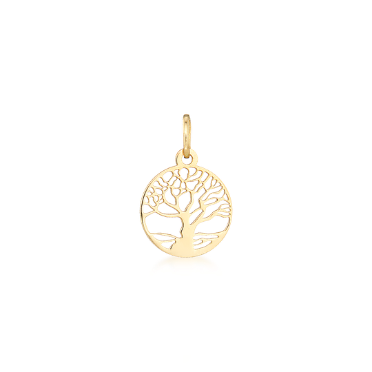 Medalha em ouro de 19,2 quilates de forma redonda com árvore da vida recortada.