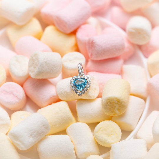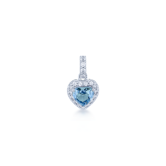 Medalha em prata 925 com zircónia azul céu em forma de coração e pequenas zircónias em redor.