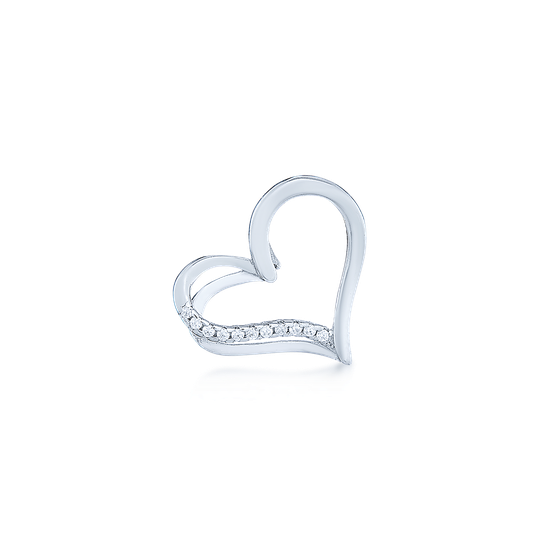 Medalha em prata com zircónias. Forma de coração em que o fio entra no seu interior.