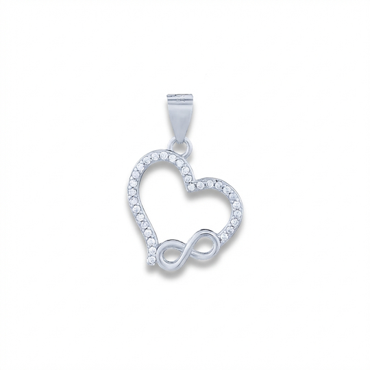 Um pendente em prata com zircónias, que une o coração ao símbolo do infinito, um presente simbólico e delicado, perfeito para celebrar o amor eterno.