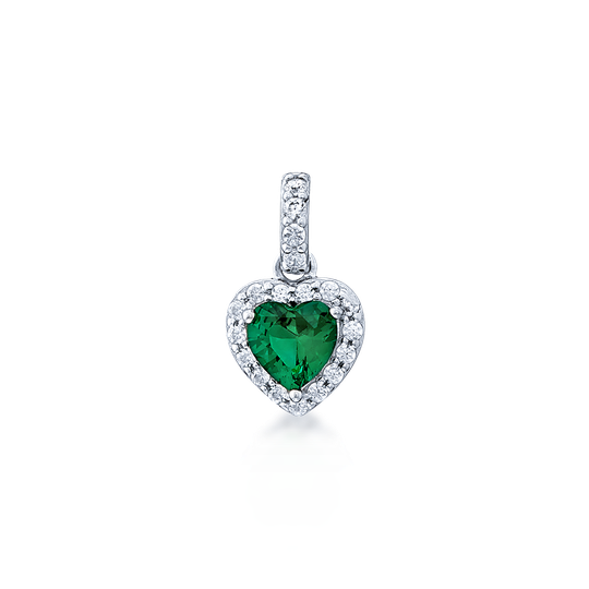 Medalha em prata 925 com zircónia verde em forma de coração e pequenas zircónias em redor.