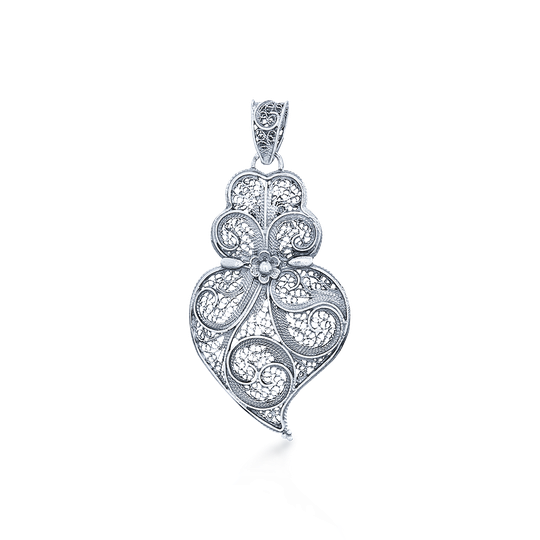 Medalha de filigrana em prata em forma de coração de Viana, um dos grandes símbolos da portugalidade.