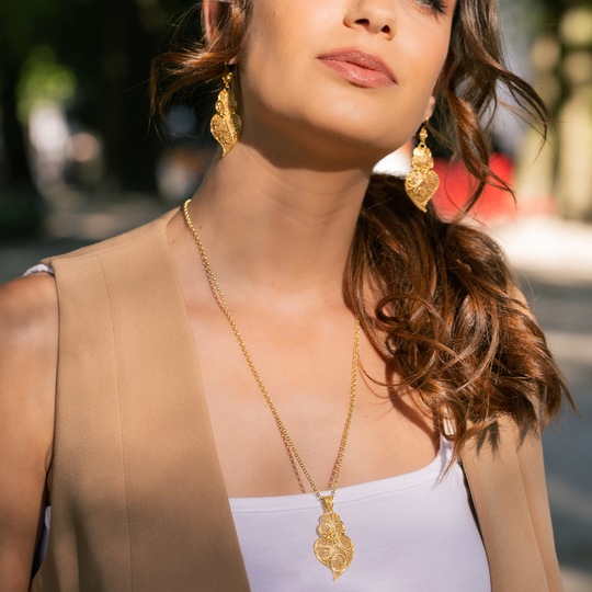 Medalha de filigrana em prata dourada em forma de coração de Viana, um dos grandes símbolos da portugalidade.