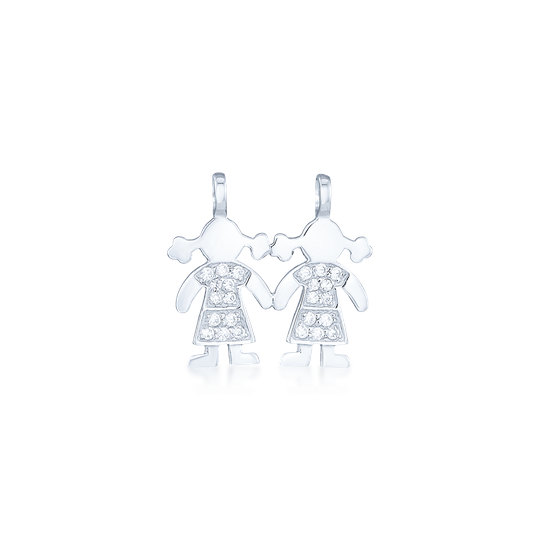 Medalha em prata com zircónias com duas meninas. Para trazer crianças especiais junto ao coração.