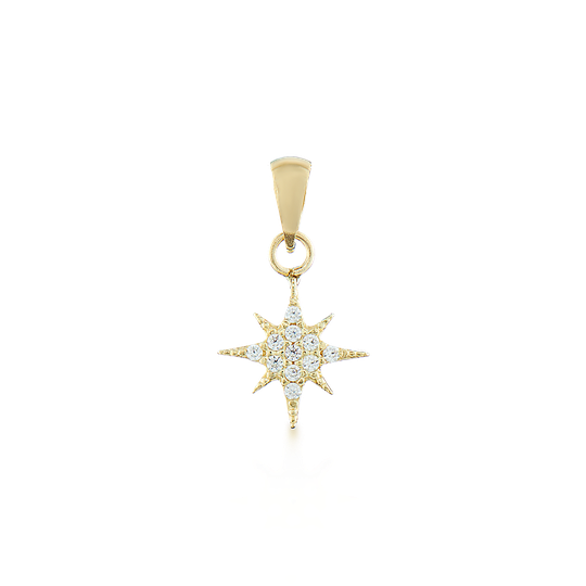 Medalha em ouro de 9 quilates em forma de estrela brilhante com zircónias.