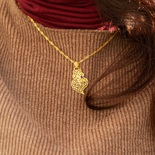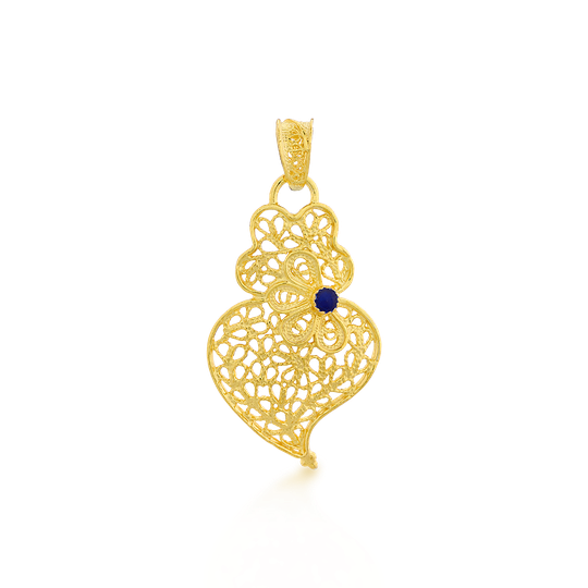 Um pequeno tesouro em prata dourada, esta medalha coração une a tradição da filigrana portuguesa com um toque moderno de cor. O detalhe em pedra azul dá-lhe um encanto especial.