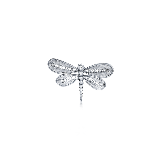 Medalha de filigrana em prata em forma de libelinha. De referência histórica na joalharia tradicional portuguesa, a filigrana eleva o carisma da destreza manual.