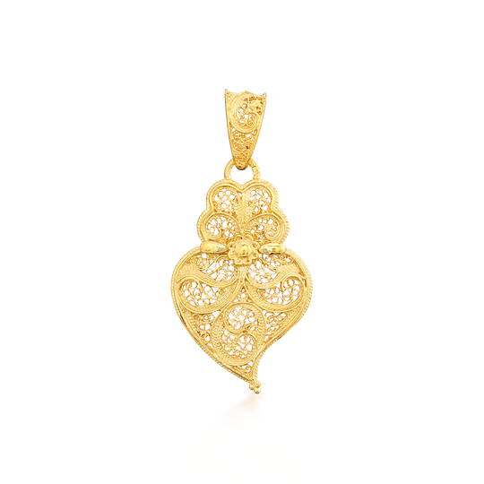 Medalha de filigrana em ouro de 19,2 quilates em forma de coração de Viana. Uma jóia intemporal produzida artesanalmente em Portugal.