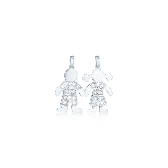 Medalha em prata com zircónias com menino e menina. Para trazer crianças especiais junto ao coração.