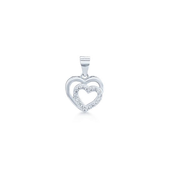 Medalha em prata com coração e outro coração com zircónias no interior.