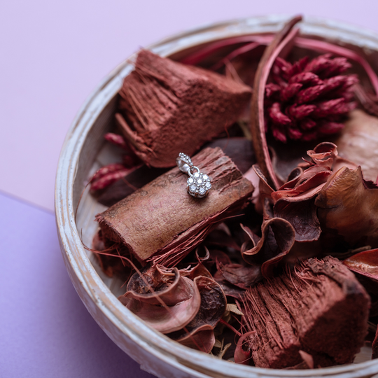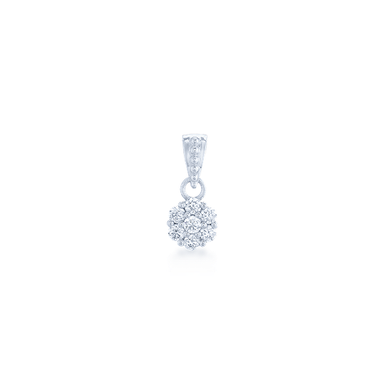 Medalha em prata 925 em forma de discreta flor com zircónias incolores.