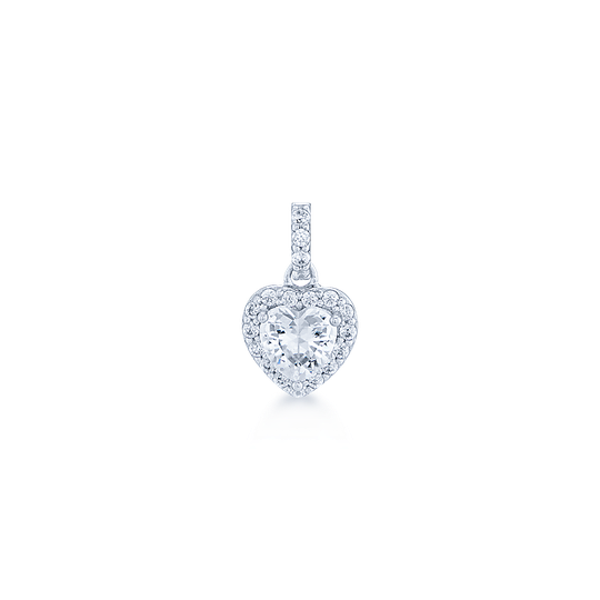 Medalha em prata 925 com zircónia incolor em forma de coração e pequenas zircónias em redor.
