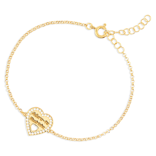 Pulseira em prata dourada com coração e gravação "Adoro-te Madrinha". Fio ajustável.