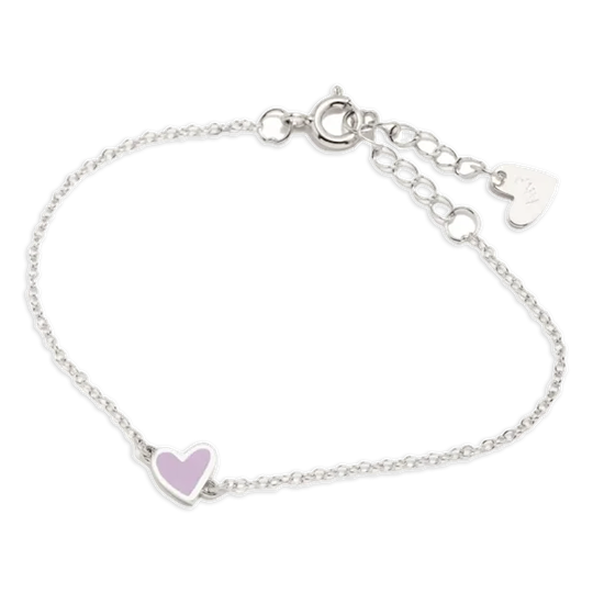Pulseira em prata com coração lilás. Fio ajustável com coração ARP na extremidade.