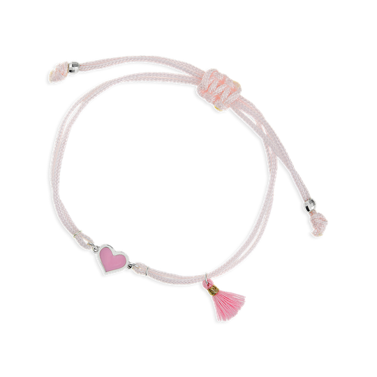 Com pendente em prata em forma de coração, esta pulseira de fio de algodão rosa-claro ajustável com lacinho rosa é um presente delicado e cheio de ternura.