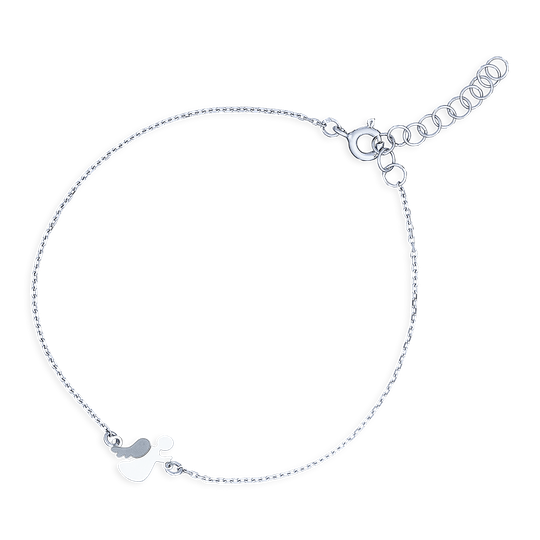 Pulseira de criança com pendente em forma de anjo em perfil. Pulseira em prata com fecho ajustável.