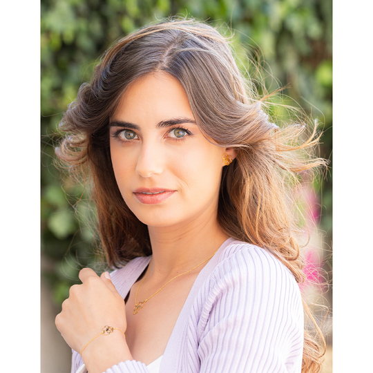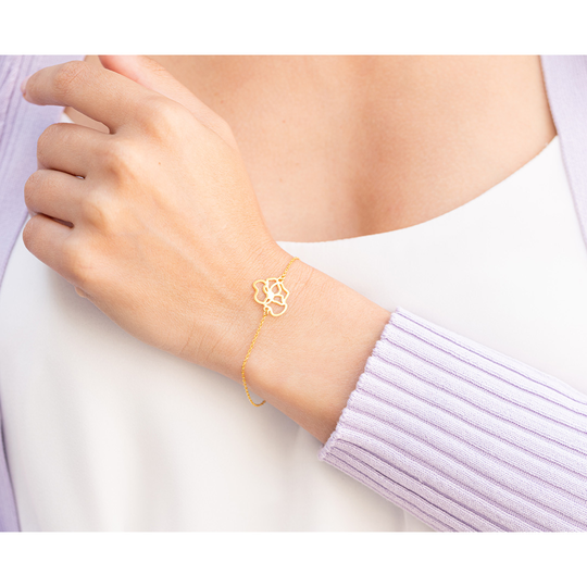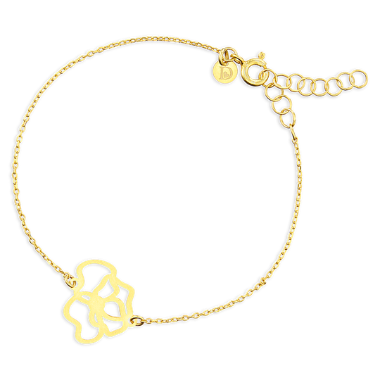 Pulseira em prata dourada com peónia recortada. Fio ajustável. Embalagem sustentável. Floral é uma coleção original da Dlight.