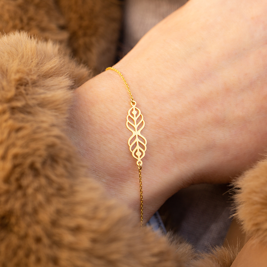 Pulseira em prata dourada com acabamento polido. Pulseira Instinto da colecção Nativa da Dlight. A Dlight é uma marca de design original do Lugar da Jóia com uma embalagem sustentável que contém sementes de camomila para plantar.