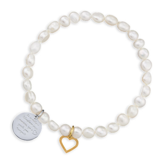 Com pérolas de água doce e pendente dourado em forma de coração, esta pulseira celebra quem ensina com dedicação. A medalha traz gravada a frase “Só as melhores Educadoras criam memórias que o coração guarda para sempre” — uma mensagem cheia de significado.