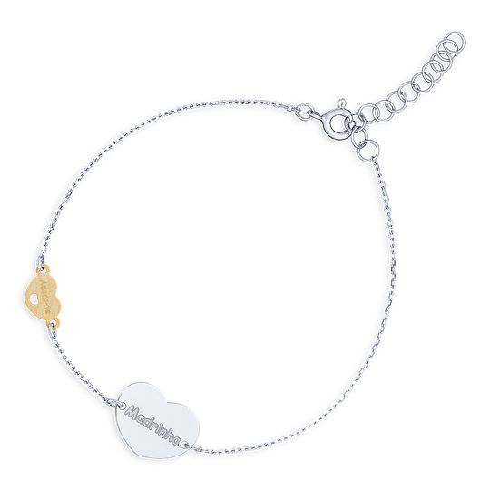 Pulseira em prata com medalha com a palavra Madrinha e pendente em forma de coração em prata dourada para a gravação "Adoro-te". Pulseira ajustável. Um presente para uma Madrinha querida.